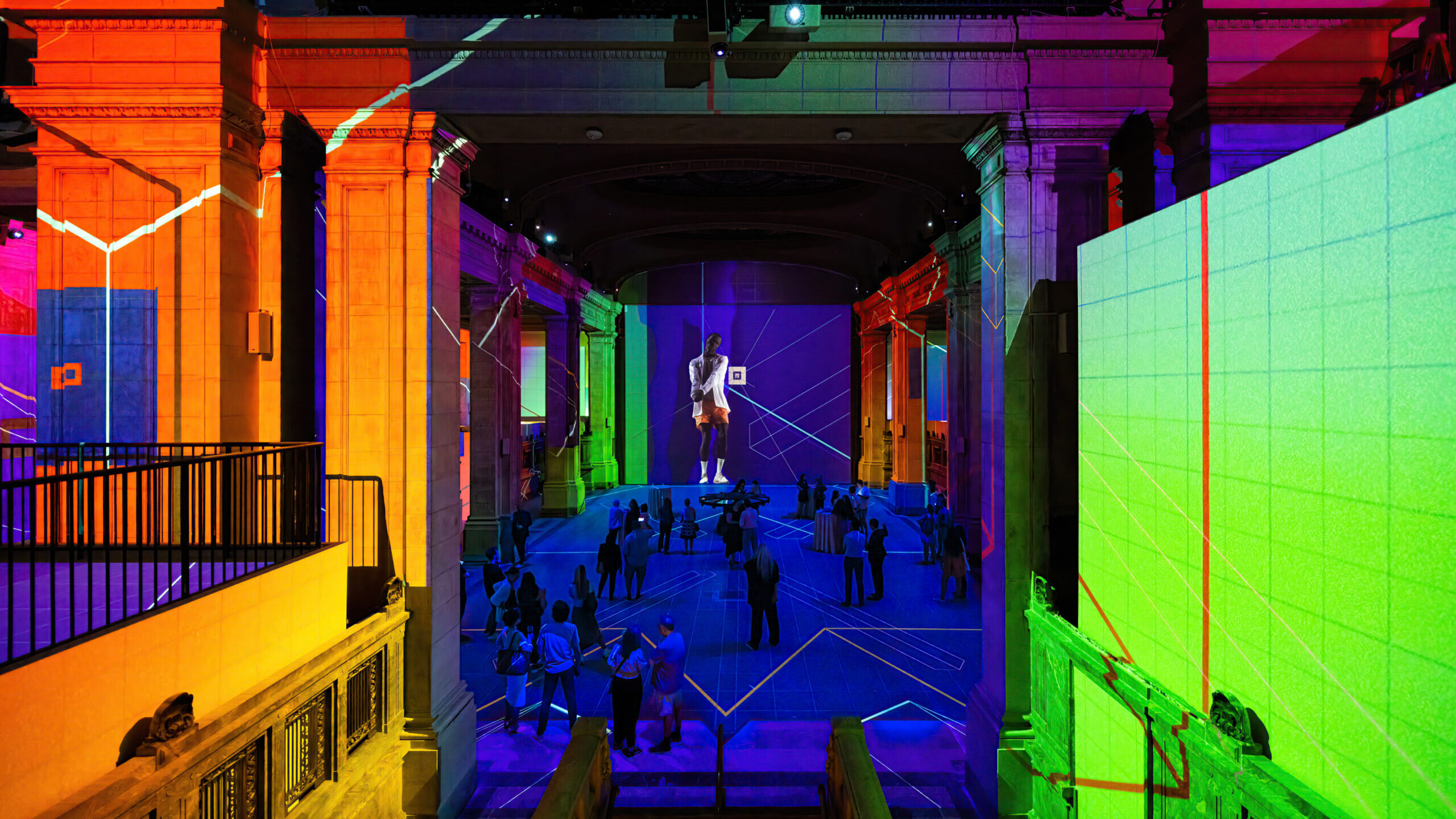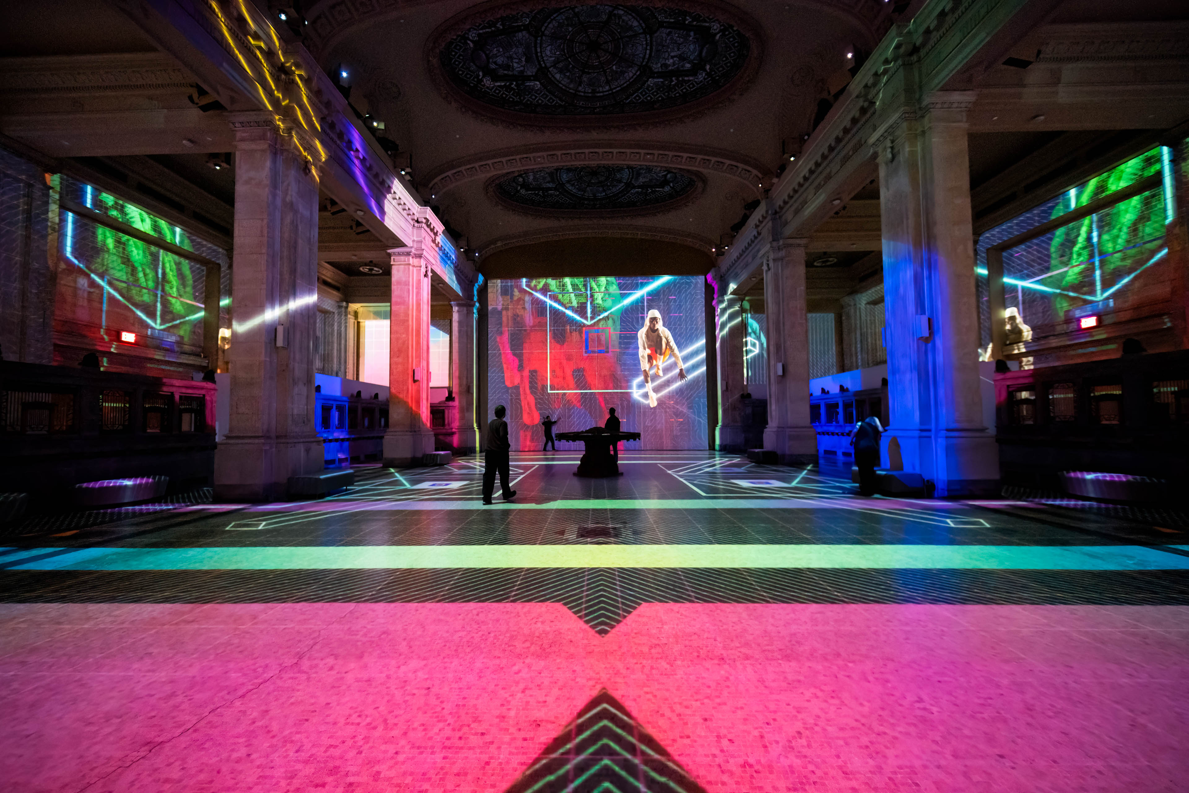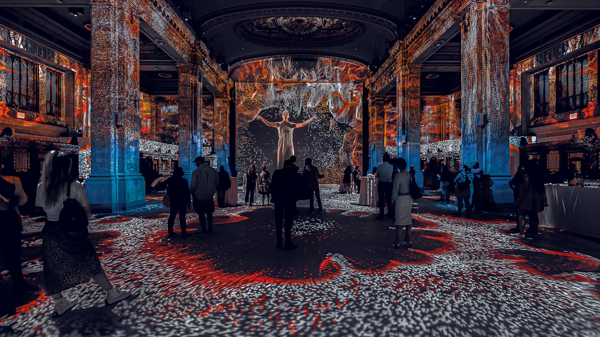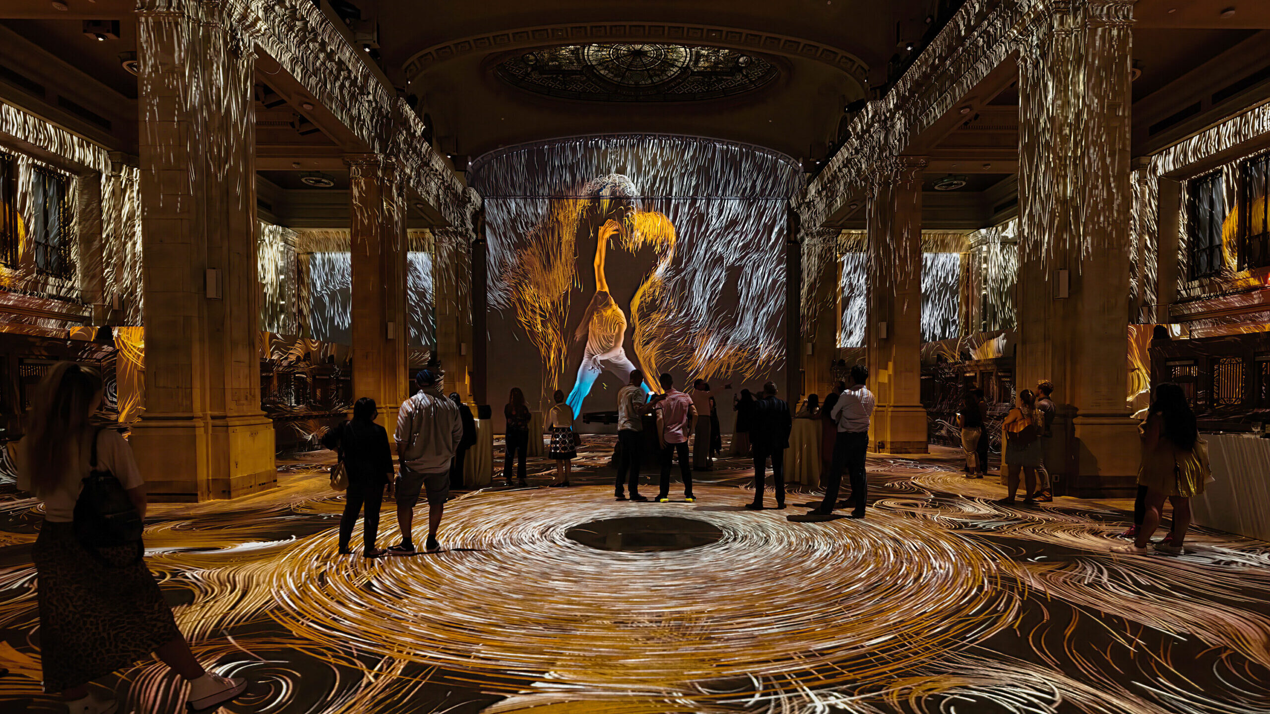 Located in the historic Emigrant Industrial Savings Bank building at 49 Chambers Street, the Hall des Lumières in New York City is a groundbreaking digital art space. This venue, with its Beaux-Arts architecture featuring marble columns, stained glass windows, and coved ceilings, has been reimagined as a permanent immersive art destination. The venue showcases large-scale projections that seamlessly integrate with its historic interior, featuring 10m tall visuals mapped precisely to its unique architecture.