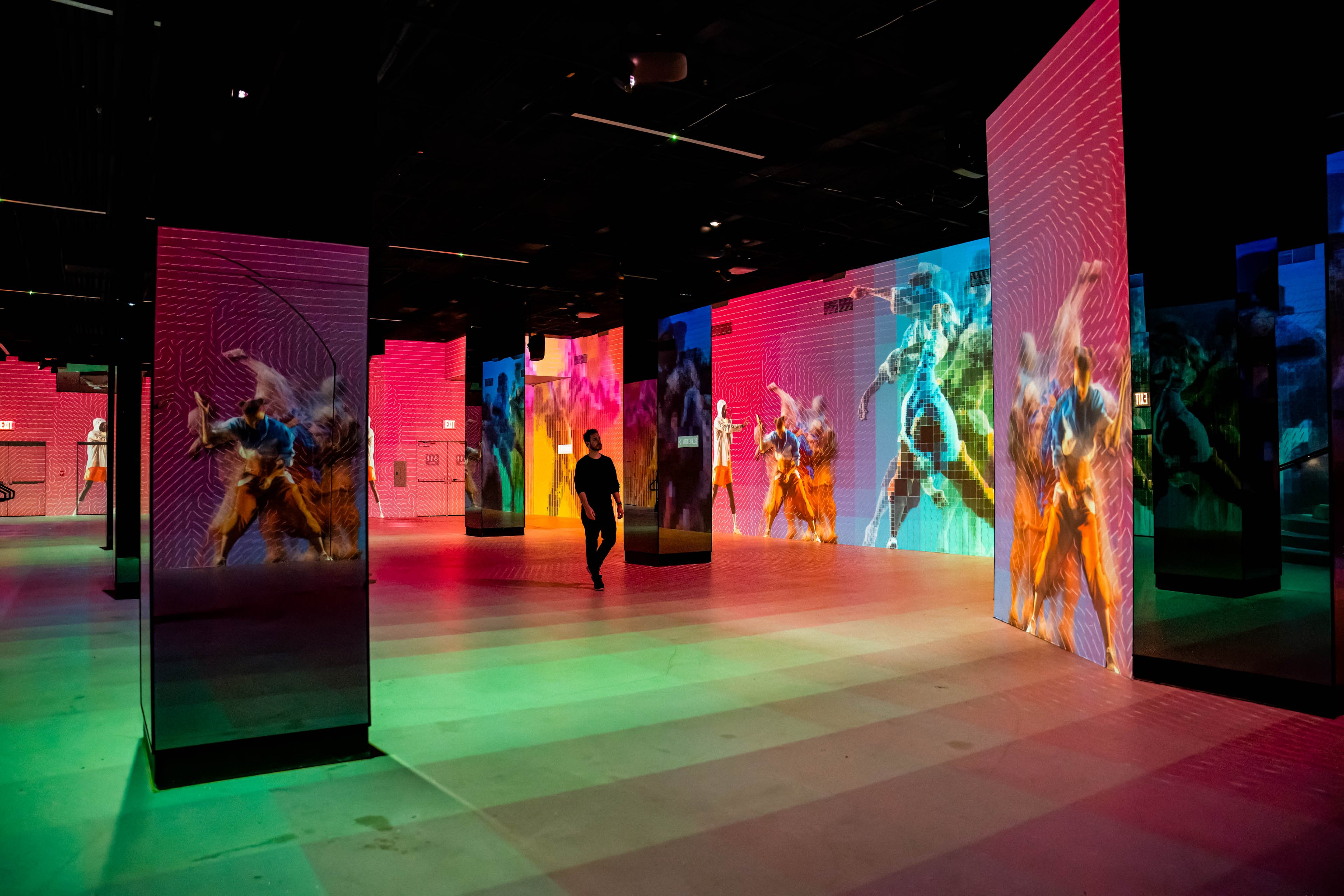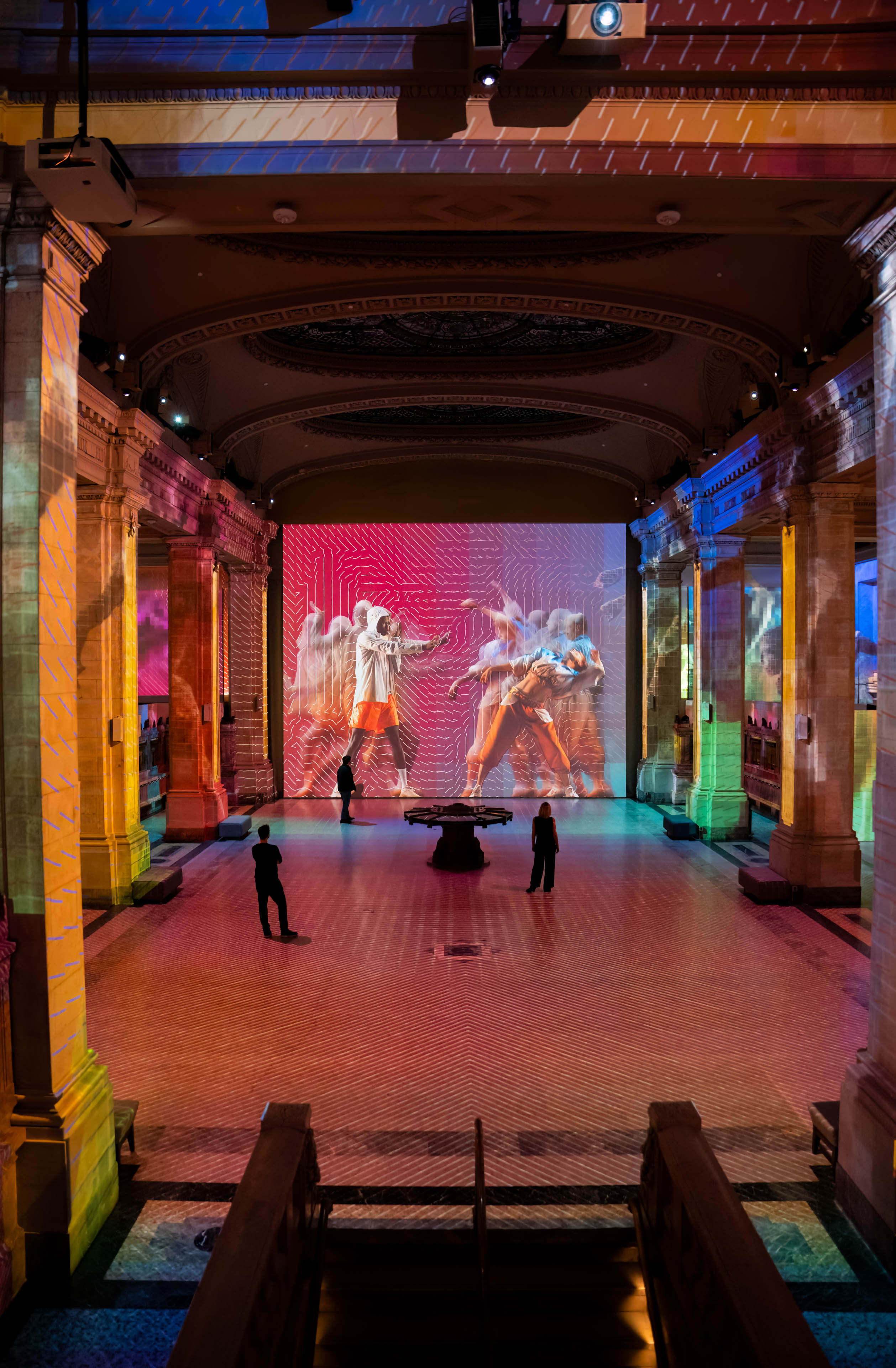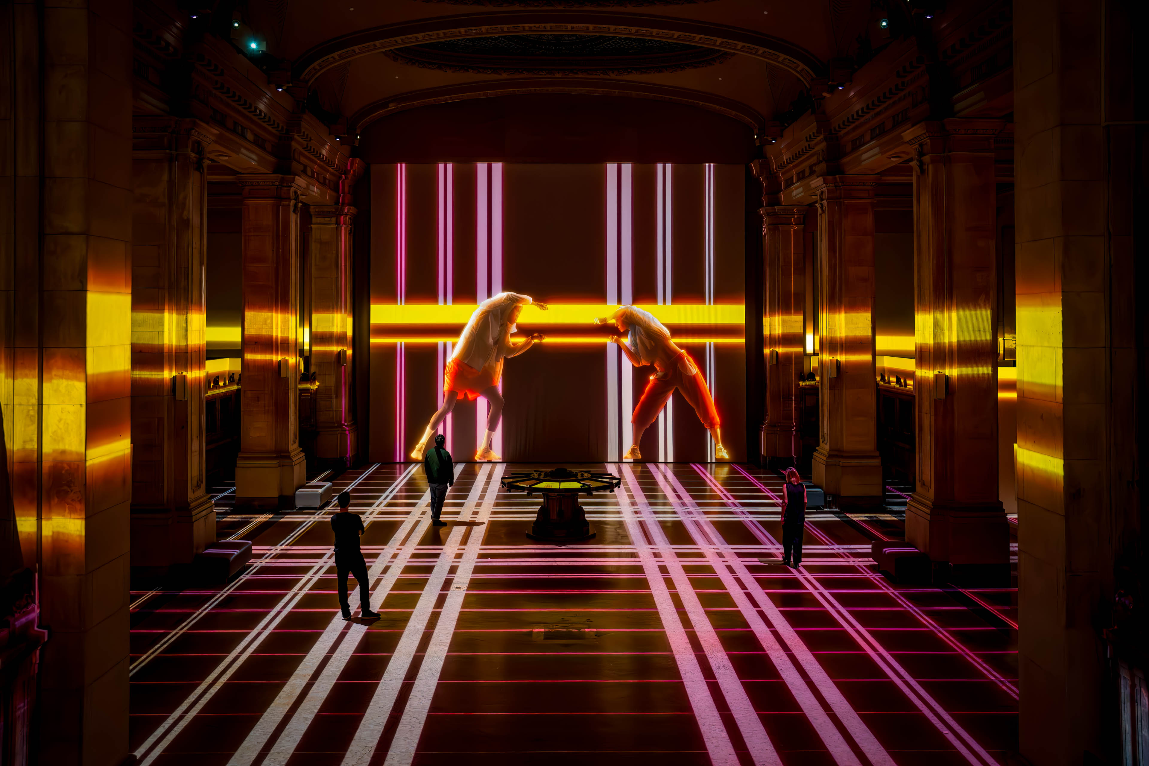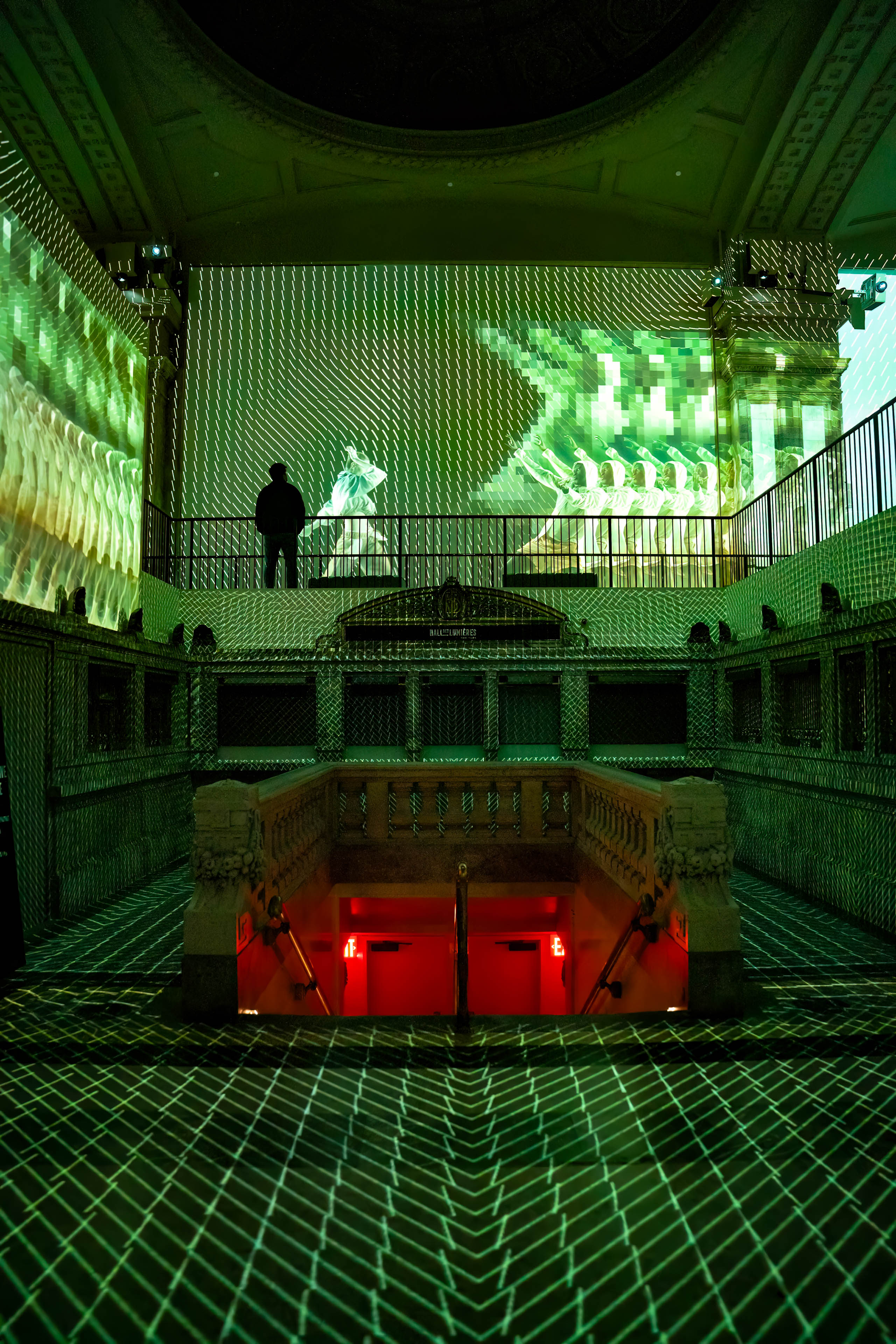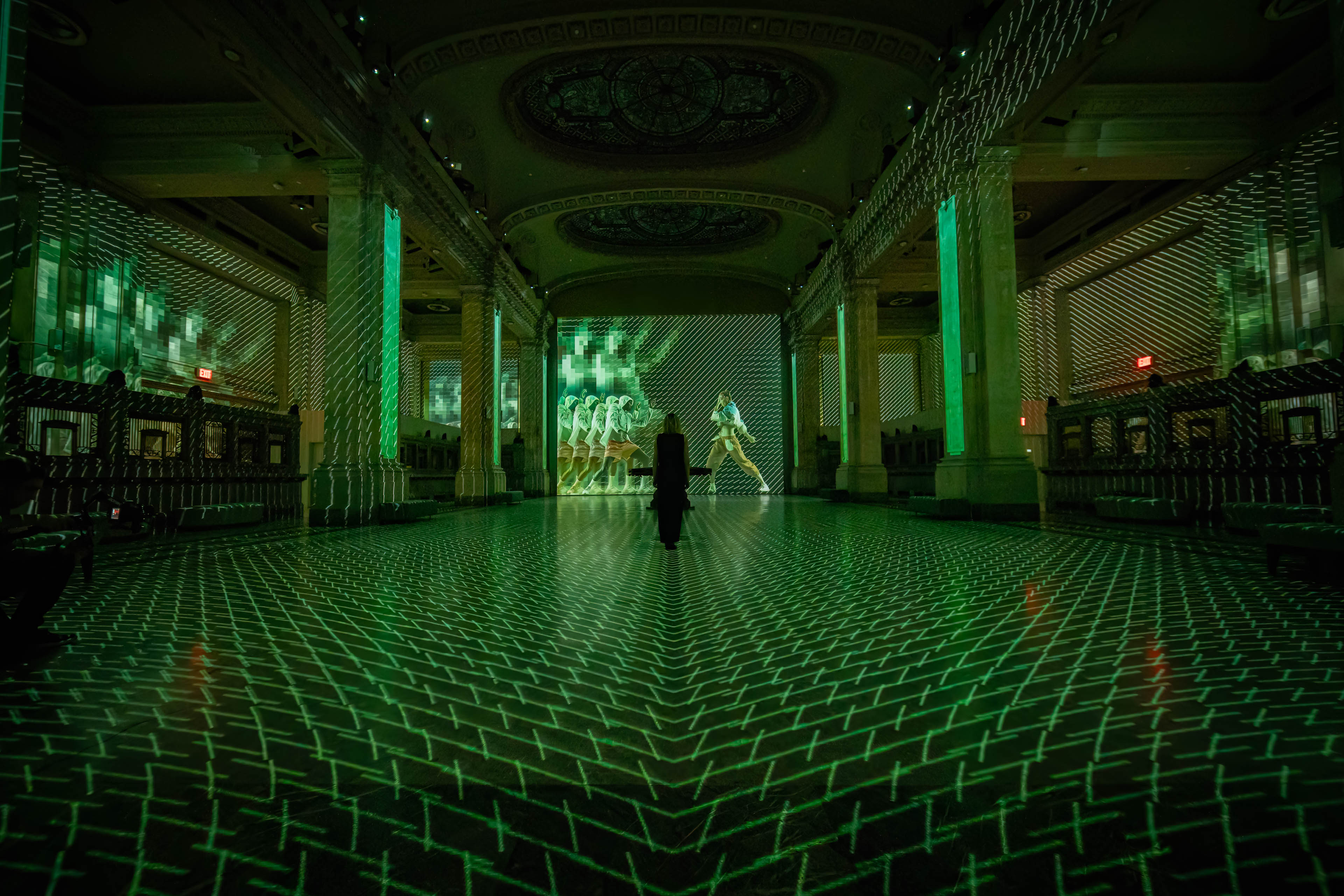 Each segment of the piece was crafted with distinct setups and spectator experiences in mind, requiring sophisticated content direction and a detailed understanding of the venue's immersive capabilities. The combination of the venue's architectural history and cutting-edge technology posed unique challenges, which we met with innovative approaches to both technical design and artistic execution.