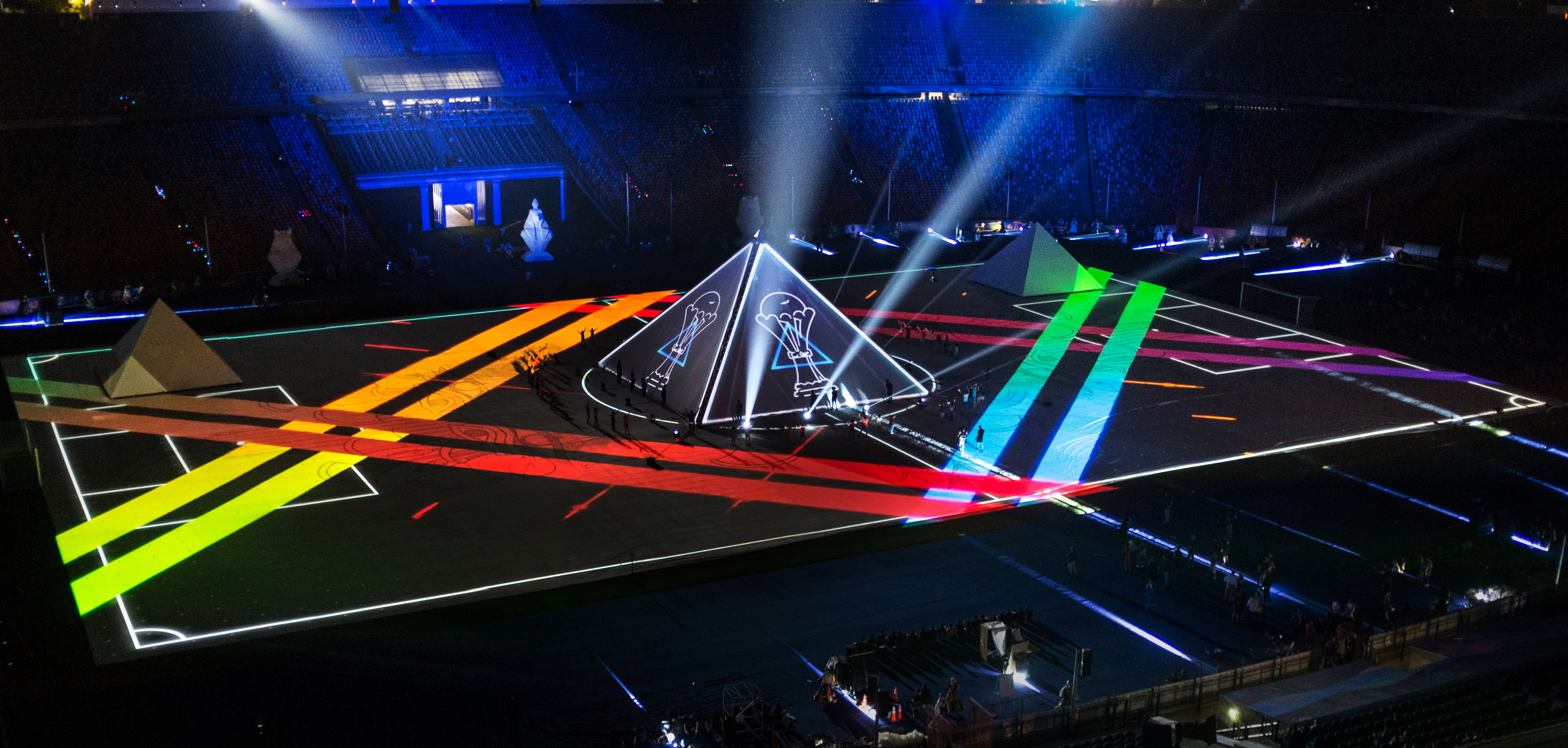 Beyond the workflows, I supervised the team through multiple rehearsals at the challenging venue, refining timing and synchronization between visuals and performances, and ensuring flawless integration on site. This combination of custom tool design, pipeline management, and live adaptation was essential to delivering cohesive, high-resolution visuals on a projection surface of unprecedented scale and complexity.